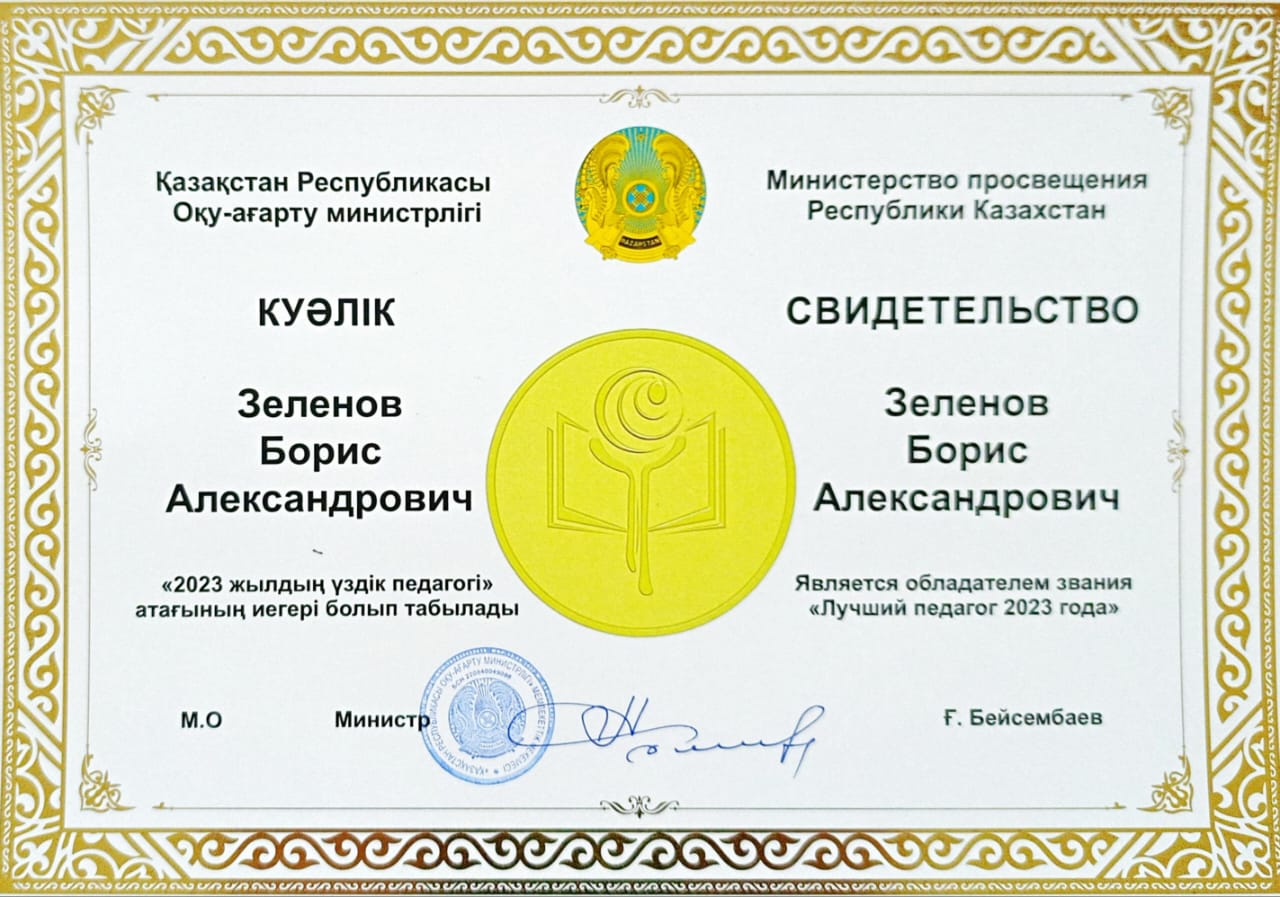 Победитель КИО по информатике (Май, 2019). III место - Бериков Ерлан (9 кл).